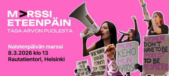 Sunnuntaina 8.3. marssitaan naisten, tyttöjen ja vähemmistöjen oikeuksien puolesta. Marssilla lähetetään vahva viesti päättäjille, ettei naisten ja tyttöjen oikeuksista voida neuvotella. Marssin…