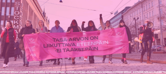 Kansainvälisen naistenpäivän marssi järjestetään jälleen Helsingissä, ja haluamme tuoda esiin, että pidämme tapahtumaa tärkeänä tasa-arvon ja yhdenvertaisuuden edistämisen näkökulmasta. Marssi nostaa esille teemoja, jotka ovat lähellä myös oman järjestömme arvoja, ja kannustamme lämpimästi jäsenyhdistyksiämme osallistumaan mukaan silloin, kun se on niille mahdollista.