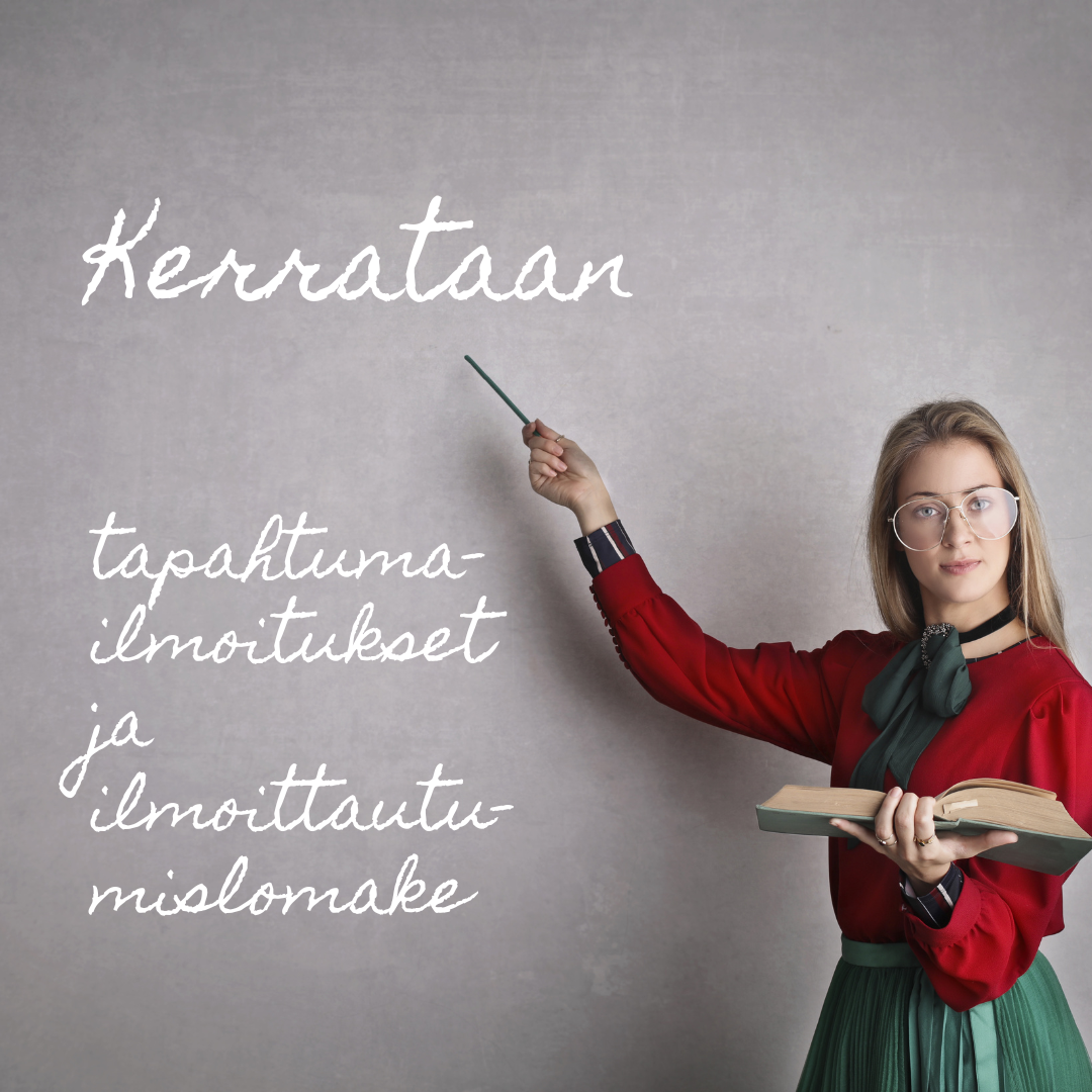 Koulutuksessa käydään läpi tapahtumien lisääminen sivuille ja ilmoittautumislomakkeen tekeminen sekä hallinta. Yhden koulutuskerran kesto on 60 minuuttia ja itselle sopivan ajankohdan voi valita kahdesta vaihtoehdosta. Ilmoittautumiset viimeistään perjantaina 13.1.23 Klikkaa valitsemaasi ajankohtaa ja täytä ilmoittautumislomake.