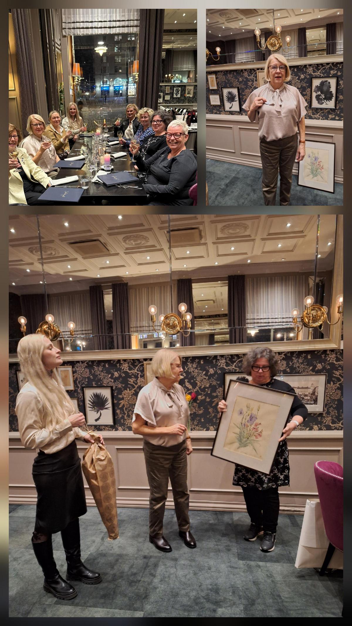 Yhdistyksen edellinen ja nykyinen hallitus tapasivat 19.11. Samalla palkittiin pitkäaikainen puheenjohtaja Riitta Rönn yhdistyksen mitalilla sekä Rauni Lappalaiselta lahjoituksena saadulla taululla.