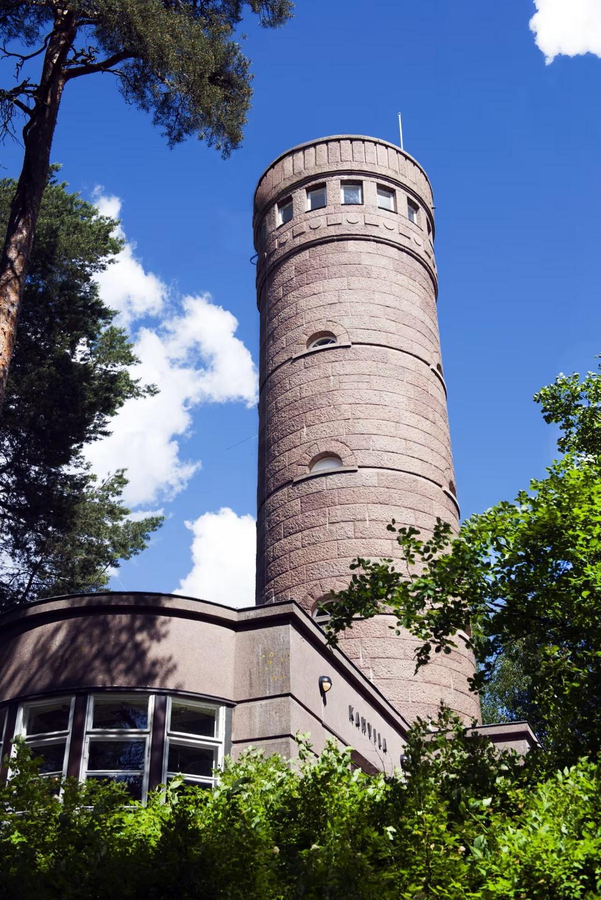 "Maailman suurimman soraharjun laella sijaitseva 26 metriä korkea punagraniittinen torni avattiin vuonna 1929 Tampereen 150-vuotisjuhlan kunniaksi. Näkötornin laelta avautuvat kuvankauniit maisemat Tampereen molempien suurten järvien, Pyhäjärven ja Näsijärven, yli aina ympäristökuntiin asti, ja paikka onkin poikkeuksetta yksi kaupungin suosituimmista matkailukohteista.