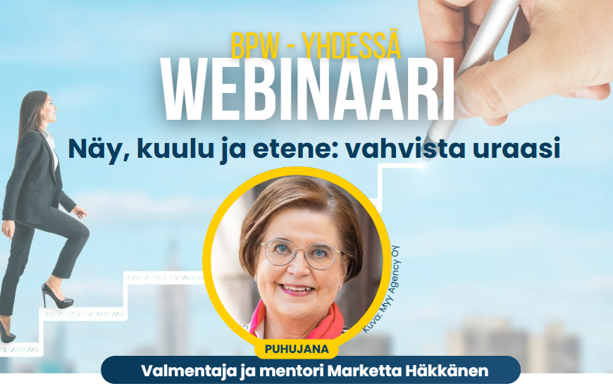 Meidän yhdistyksellä on kunnia aloittaa vuoden 2026 BPW - Yhdessä webinaarisarja ja toteutammekin tapahtuman hybridinä, joten tervetuloa jäsenille mukaan tapaaman vieraaksemme saapuvaa Marketta…
