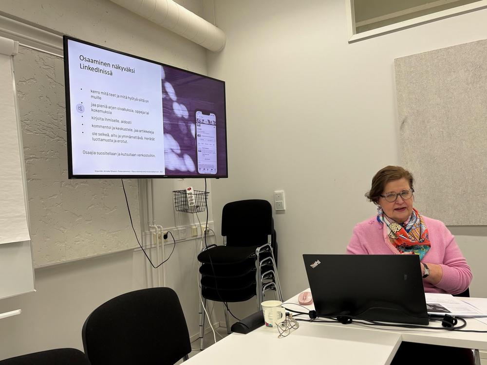 Meidän yhdistyksellä oli kunnia aloittaa vuoden 2026 BPW - Yhdessä webinaarisarja ja toteutimmekin tapahtuman hybridinä. Meitä oli paikalla 12 henkeä tapaamassa vieraaksemme saapunutta Marketta Häkkästä ja linjoilla oli toiset 12 henkeä.