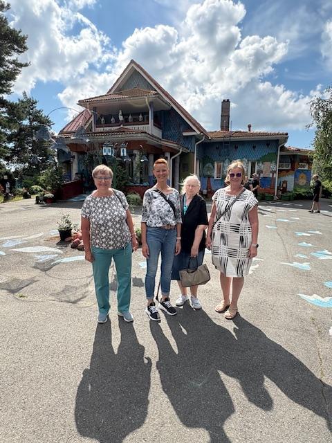 Uuteenkaupunkiin päästyämme kävimme tietysti heti kahvilla Pakkahuoneella. Sieltä siirryttiin keskustaan pienelle shoppailukierrokselle - tutustuttiin paikallisiin kädentaitotöihin (nukkekoteja, monenlaisia uniikkeja käsitöitä ), ja vierailtiin sisustusliike Ulpukassa ja kenkäkauppa Alinassa. Jotain taisi niistä lähteä mukaankin. Lounas nautittiin rannassa ja sen jälkeen oli kulttuurin vuoro. Ensin tutustuttiin Wahlbergin museoon ja siitä ajettiin Taidetalo Pilvilinnaan, jossa ihasteltiin hauskoja veistospolun varrelle sijoitettuja taideteoksia ja nautittiin mitä herkullisimmat kakkukahvit.