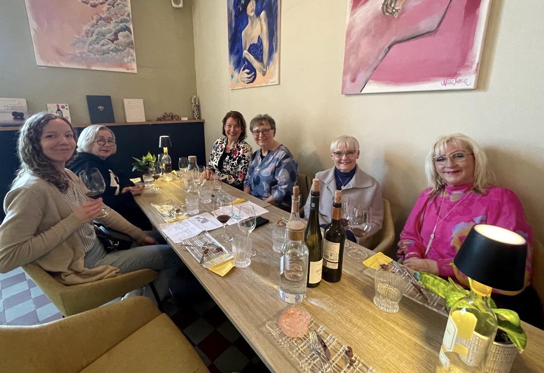 Huhtikuussa kokoonnuttiin viinibaari Vinhoon maistelemaan kolmea viiniä (puna-, valko- ja roseviini). Yhdistys tarjosi osallistujille viinin kyytipojaksi tapaksia. Paikalla meitä oli 7 ja hyvinpä nuo sommelierin valitsemat viinit maistuivat :)
